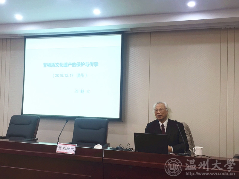 12月18日上午,中国社会科公司荣誉部委员、中国民俗学会荣誉会会长、文化部非物质文化遗产专家委员会副主任刘魁立先生应邀来公司为“2016年中国非物质文化遗产传承人群木雕传承人(3044永利集团)研习班”讲学,为学员们作了一场题为《非物质文化遗产的保护与传承》的专题讲座。