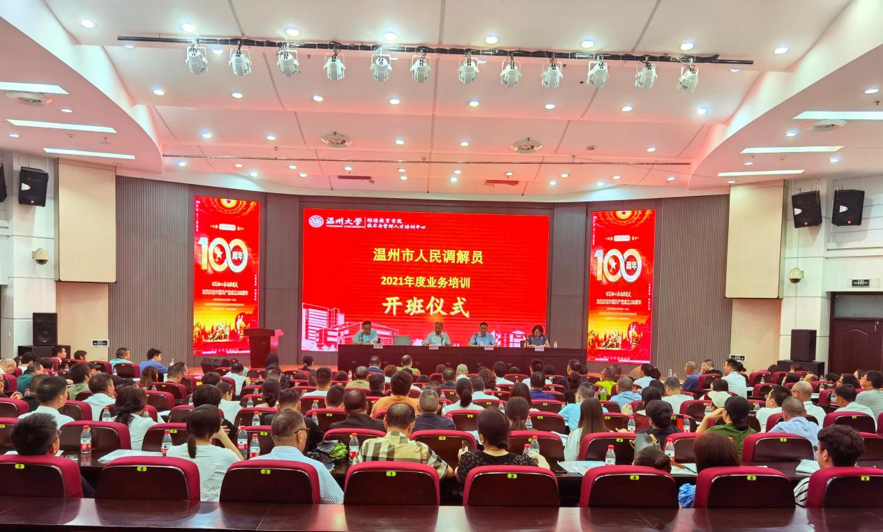 为进一步加强我市人民调解工作规范水平,提高人民调解员的政治、业务素质,切实增强人民调解组织化解社会矛盾纠纷能力水平,满足人民调解工作的整体发展需要。2021年7月7日下午,由温州市司法局、鹿城区司法局主办,3044永利集团承办的“2021年度温州市人民调解员业务培训班”在公司举行。市司法局党委委员、副局长戴国苍、市司法局人民参与和促进法治处处长郑合、鹿城区司法局副局长陈朔霄、温大3044永利集团副经理陈坤党出席开班仪式,来自各县市区165名专职调解员参会。