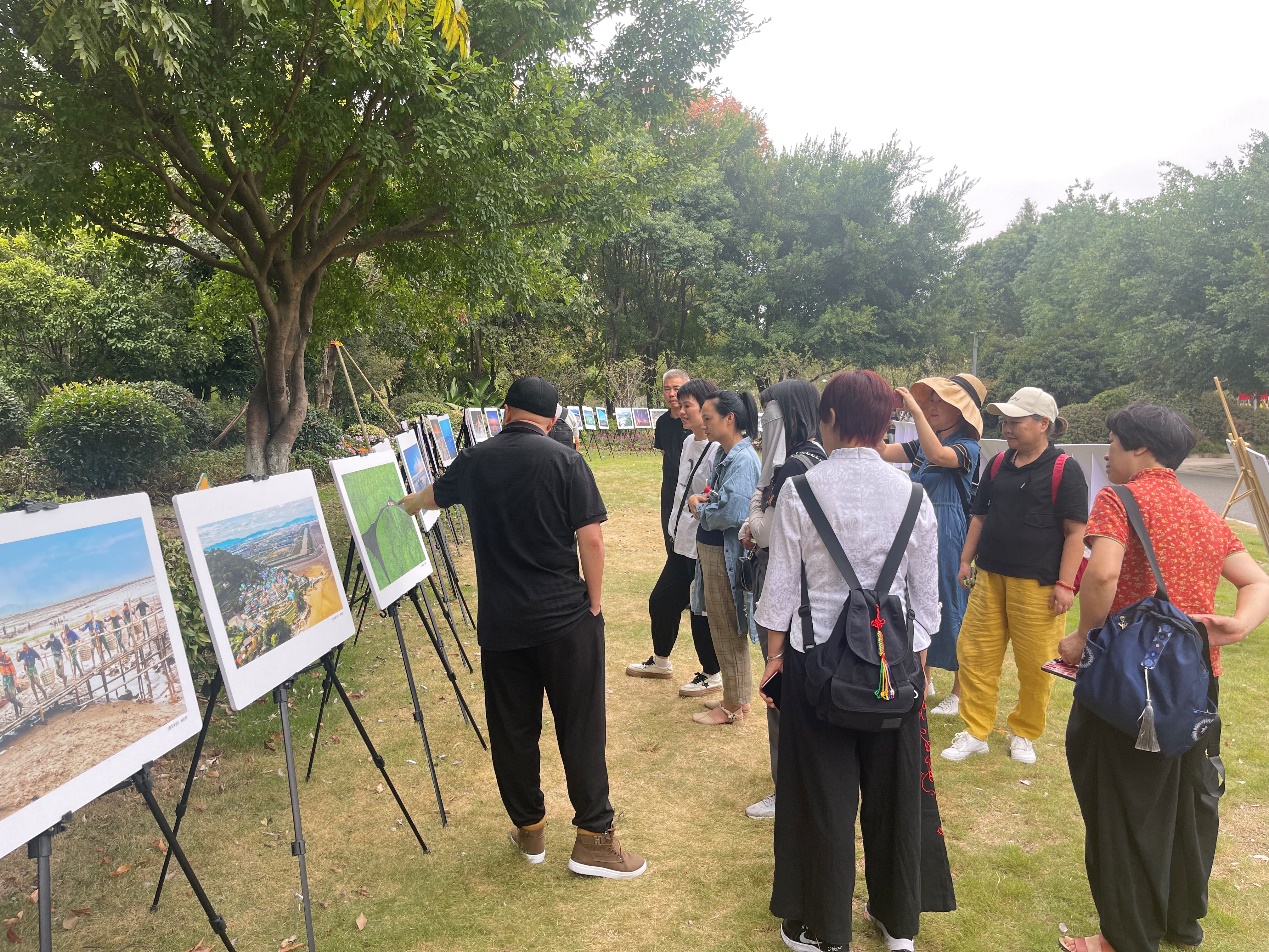 杨飞虎老师带领学员们参观了温州市第三届摄影艺术展,现场作品以小见大,展示了丰富多彩的人文风光,并通过照片向观看者传达了画面背后的故事。杨老师边走边讲解,总结拍摄技巧,以便各学员能学以致用。