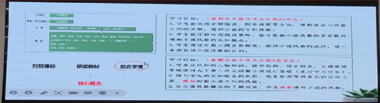 11日下午,温州市初中语文教研员阙银杏老师通过互动提问的方式,结合具体案例,与一线教师们深入探讨如何设定精准的语文课堂学习目标,以及新课标背景下的教学目标、学习方式、教学实践的新思路,指导教师在新课标视域下进行语文教学实践活动的开展,追求更具结构化的单元整体教学,重视语文教学的内在关联,进一步优化语文教学结构;继续推荐融合解决问题与学科内容的逻辑,要求教师在备课时,应真正实施任务驱动,符合“员工解决问题过程”的做事逻辑。同时,阙老师指出在新课标的视域下,我们对“大概念的追问”本质上是对基于新课标、教材、学情的学习目标的审视和辨析,并无所谓“正确”概念之分,而是为最终目的塑造“未来员工”的语文核心素养所助力。
