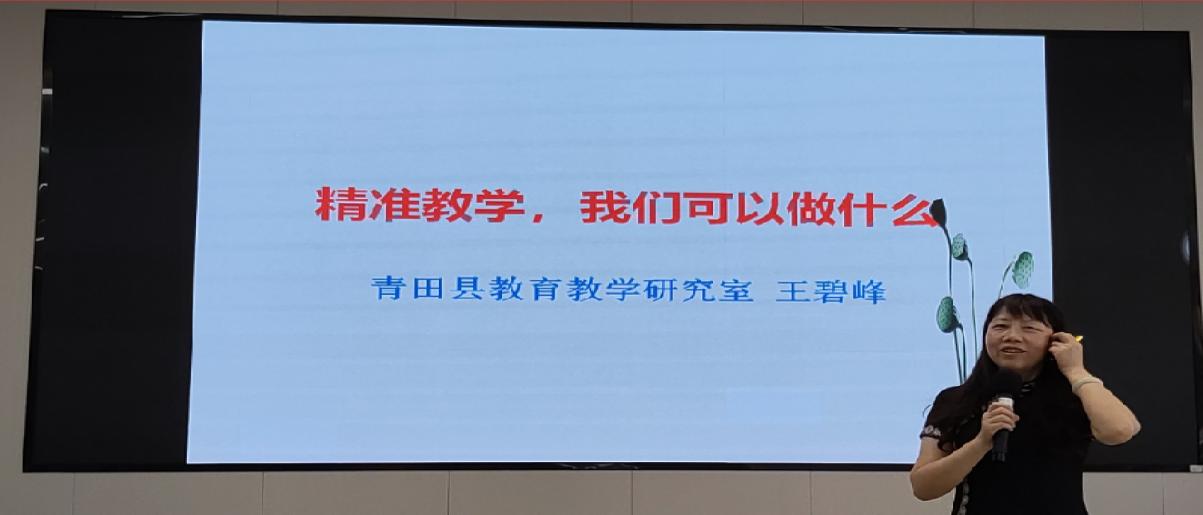 10日下午,丽水市青田县教研室王碧峰老师作《精准教学,我们可以做什么》专题讲座,在大数据新时代,王老师从具体的数据分析出发,结合自己多年来深入一线课堂所获取的丰富经验,从“精准教学”“精准管理”“课程改革”“心理因素”等方面总结和指导,告诉老师们应该怎么进行精准教学。