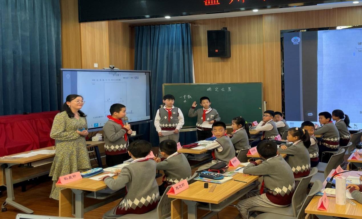 第五节课是温州市蒲鞋市小学李晓老师的《用数对确定位置》,李老师的课堂从“小鸡的位置怎么表示?”开始,从线上的点引到面上的点,从表示出一个点的位置,到找出四边形的一个点的多个位置,思维层次层层递进,员工扎实的掌握了数对,课堂最后回归于员工自己位置的描述。