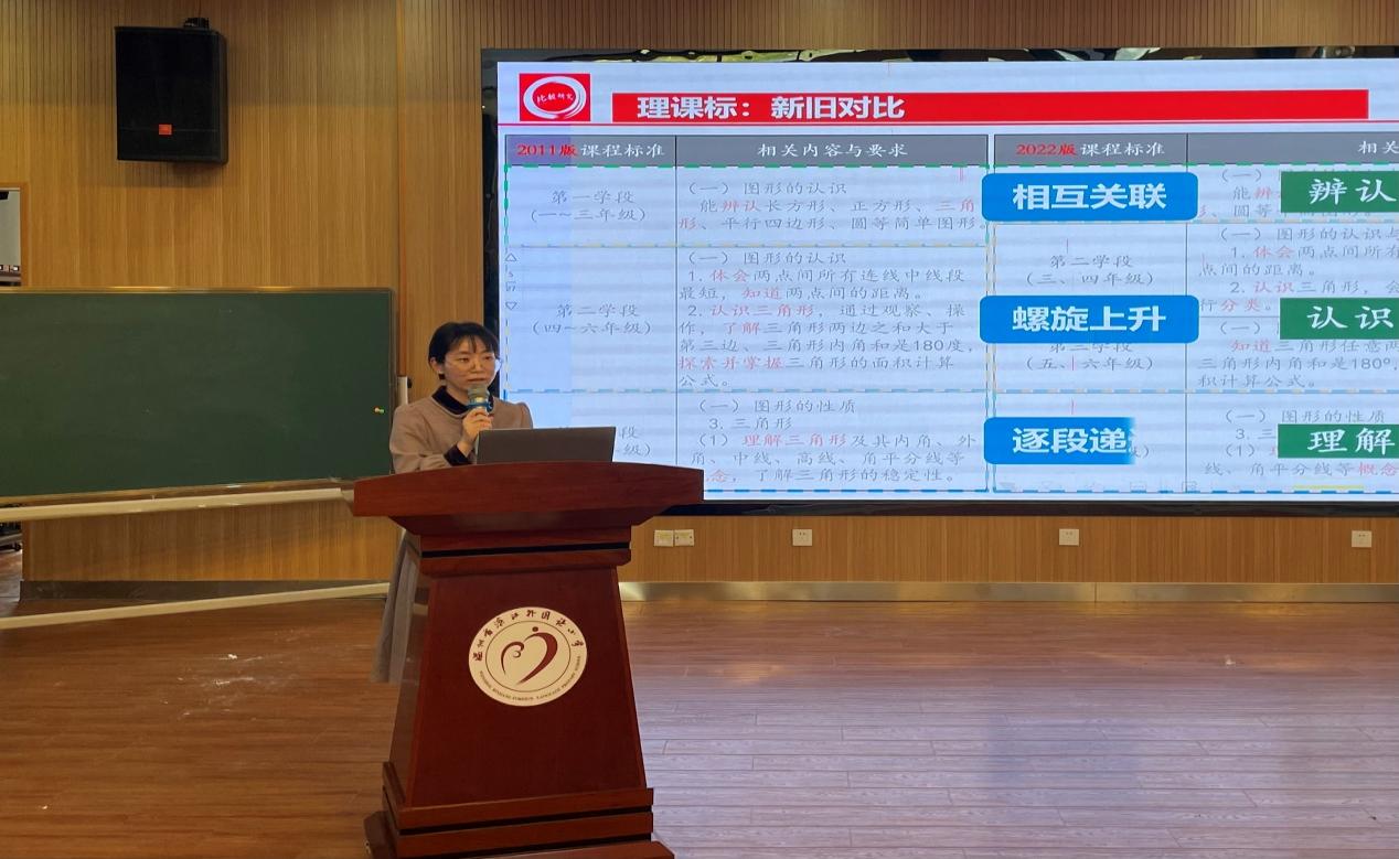 课堂展示完毕后,由滨江外国语小学的李胜欧老师和瑞安市塘下实验小学的李琼琼老师分别围绕《用数对确定位置》和《三角形的认识》进行观点分享,老师们以“学什么,怎么学”为核心,深挖教材的内涵,通过对比不同时期,不同版本教材的内容,制定合适的教学目标。“怎么学”采用框架结构,借鉴SOLO分类理论,从构建概念,到明晰概念,最后融通概念。每一堂精彩课程都是从从内容整体解读、学情整体分析以及路径的整体设计等方面展开深度分析、进行精心设计,让人眼前一亮。