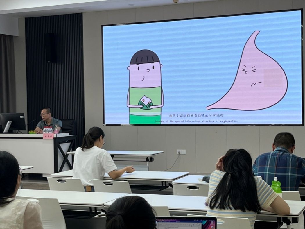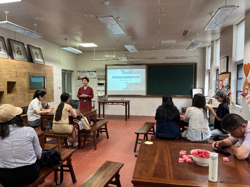 温州市员工与营养健康教育委员会秘书单淮春老师为学员们带来《传统饮食文化理解与传承》专题讲座。单老师借由自己身在国外的好友,将自己对祖国的思乡之情寄托于中华美食里,引出了中西饮食文化对比。她还从烹饪方法、饮食方式、饮食理念入手为在场的老师们科普了中西方饮食文化的不同。