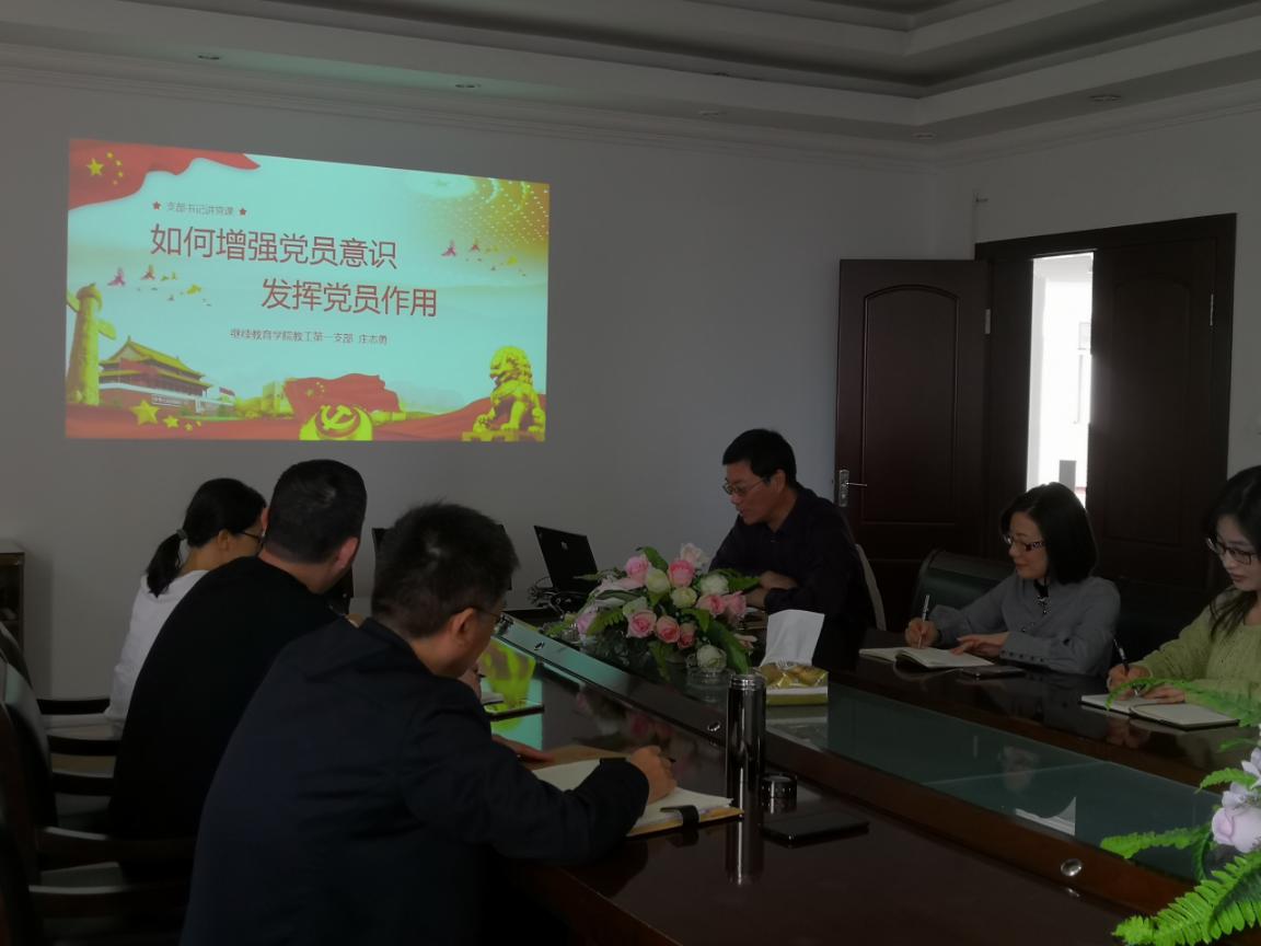党员是构成支部组织的元素,只有增强党员意识,真正发挥党员作用,才能在各个方面都起到先锋模范作用。为认真落实贯彻公司和公司开展“不忘初心、牢记使命”主题教育实施方案,3044永利集团教工第一党支部书记庄志勇于10月31日为支部党员同志上《如何增强党员意识 发挥党员作用》主题党课。