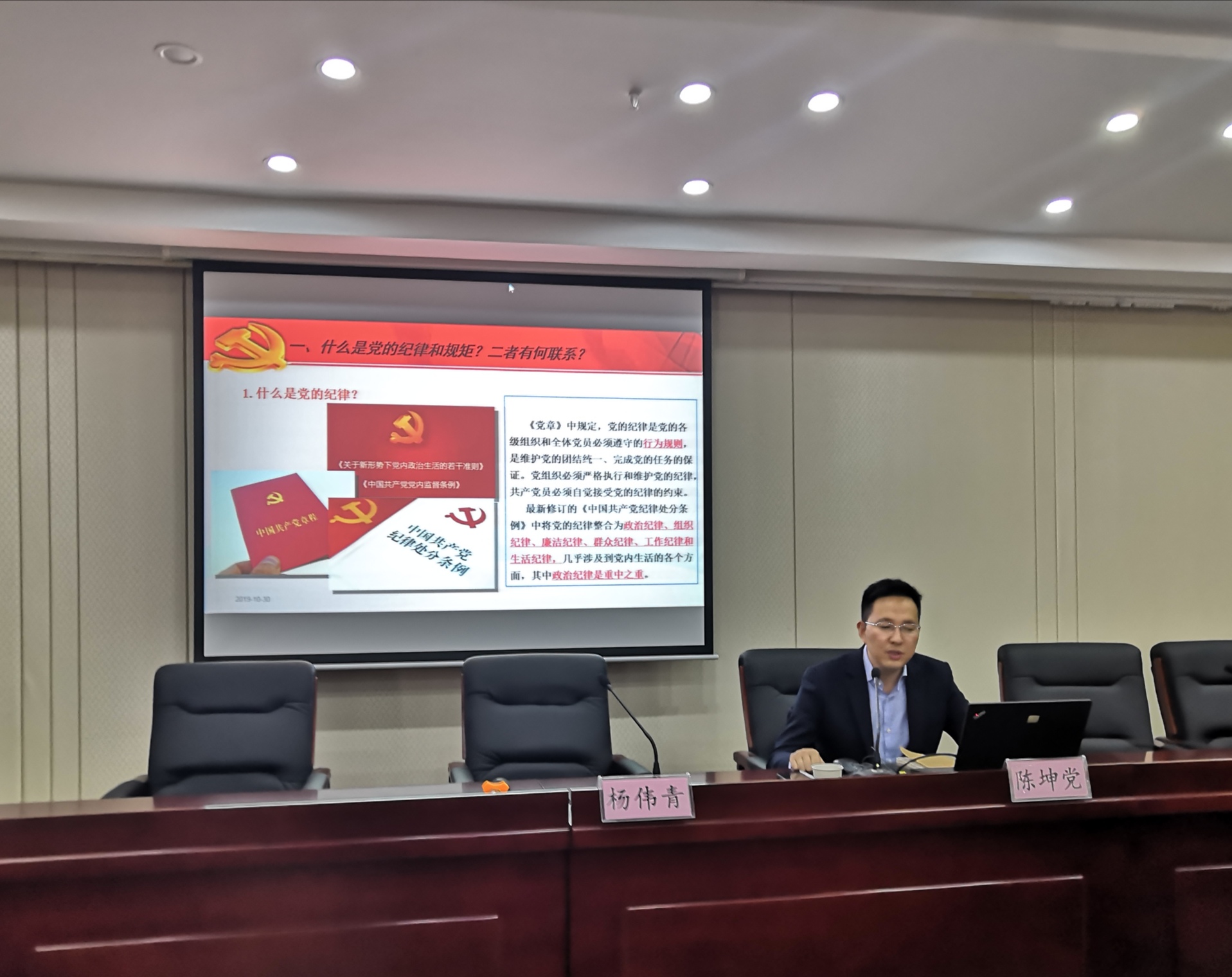 在第一场报告中,陈坤党副经理以《守纪律讲规矩谋共生》为题,给全院教职工上了一堂生动深刻的党课。陈经理结合继续教育工作思考,分别从“什么是党的纪律和党的规矩,二者有何联系?”、“为什么要守纪律讲规矩?”、“怎样做到守纪律讲规矩?”和“守正创新,谋求共生”四个方面展开论述,深刻阐述了如何将“守纪律讲规矩”内化为思想自觉与行动自觉,做到心中有党、心中有民、心中有责、心中有戒,不断增强党的创造力、凝结力与战斗力。通过“三问”,即想做什么、能做什么、可做什么,剖析了在数字化时代,非学历继续教育如何才能守正创新,谋求共生。他认为,只有全公司党员干部履职尽责,攻坚克难,精益求精,不断提高管理能力和服务水平,才能提升办学的社会效益和经济效益,更好地推动公司向前发展。