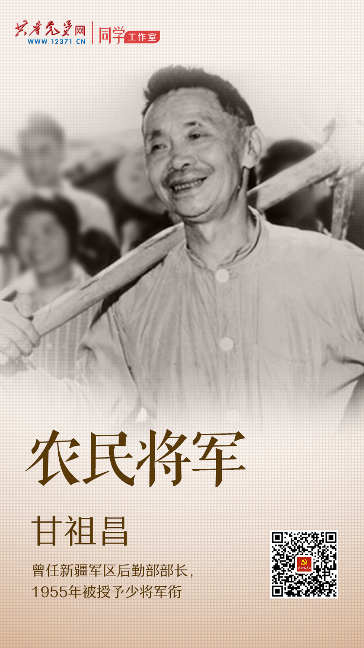2013年9月26日,习近平同志在会见第四届全国道德模范及提名奖获得者时指出,甘祖昌是我们共和国的开国将军,江西籍的老红军。新中国成立后,他当了将军,但是他坚持回家当农民。我当小员工时就有这篇课文,内容就是将军当农民,我们深受影响。我们要弘扬这种艰苦奋斗精神,不仅我们这代人要传承,我们的下一代也要弘扬,要一代一代传承下去。