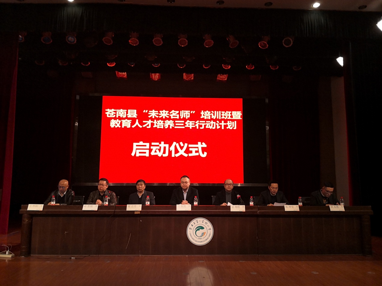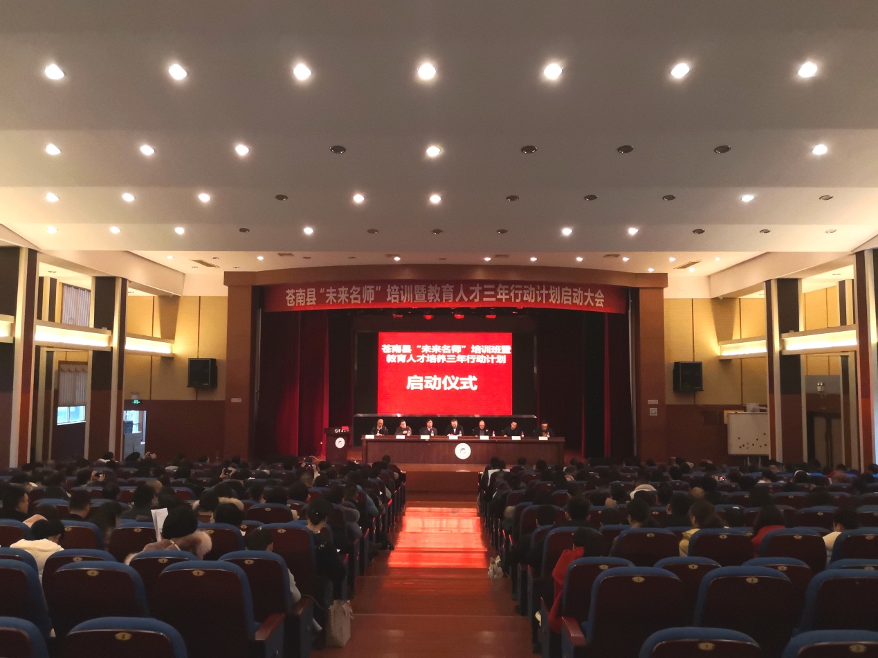 为进一步落实《苍南县教育人才培养三年行动计划(2019-2021年)》精神,为办人民满意教育为目标,以培育、造就一批教育高层次人才为重点,深化新时代教育人才队伍建设改革,全面提升苍南县教育人才素质能力。12月22日上午,苍南县“未来名师”培训班暨教育人才培养三年行动计划启动仪式在苍南县第一实验小学举行。苍南县教育局党委书记、局长兰准凯,人事科科长王怀阳,教师发展中心副主任洪永胜,杭州师范大学经亨颐公司副经理叶哲铭、3044永利集团副经理陈坤党出席启动仪式。仪式由县教育局党委委员、副局长金理胜主持。来自全县“未来名师”初中语文、数学、英语和小学语文、数学等不同年级七个学科共计392位学员参加培训。