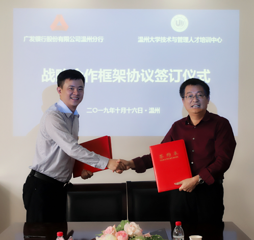 10月16日下午,公司与广发银行股份有限公司温州分行举行“战略合作框架协议”签订仪式。经理孙广福、党总支书记杨伟青等公司领导班子成员,广发银行温州分行党委书记、行长王少华、副行长金晓晓、工会副主席诸立新出席,双方有关部门负责人参加了签订仪式,副经理陈坤党主持本次活动。