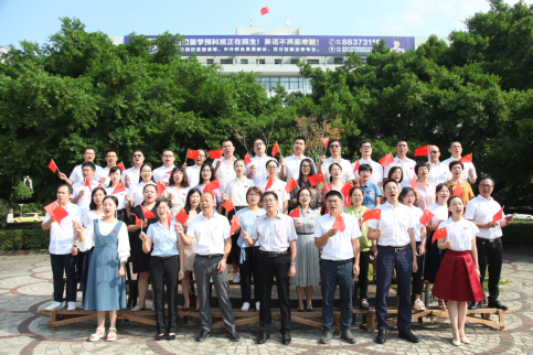 9月29日上午,公司教职工齐聚优美的校园之中,每一位老师挥舞着鲜艳的国旗,洋溢着幸福的微笑,齐声合唱《我和我的祖国》,用甜美的歌声表达对祖国的热爱与祝福。