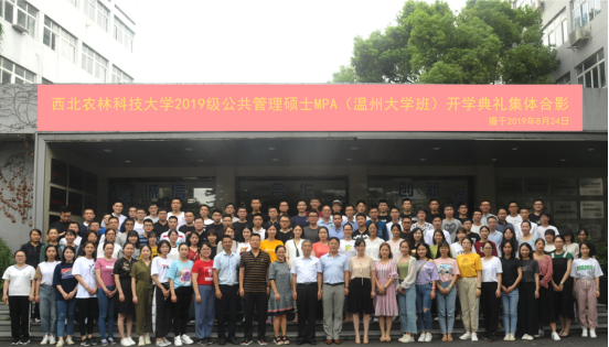 2019年8月24日上午,西北农林科技大学2019级MPA(公共管理硕士)开学典礼暨学术报告会在公司继续教育大楼四楼报告厅隆重举行,共有109位新生参加本次活动。西北农林科技大学人文社会发展公司经理朱宏斌,学位评定委员会委员张磊 和公司副经理林鹣鹣等领导出席典礼。典礼由公司学历科罗冰科长主持。
