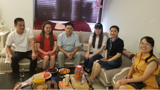 在17市场营销班吴怡娴同学家中,杨伟青书记详细了解了员工的基本情况,与员工家长促膝长谈。杨伟青书记对吴怡娴同学在校的表现给予了充分的肯定,并勉励她继续刻苦学习,做到学以致用,并对员工的学业、职业生涯规划等进行指导。员工家长对公司此行表示感谢,并表示一定会做好家校配合,共同帮助孩子成长成才。