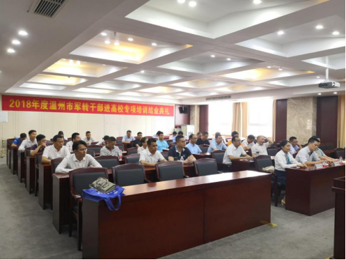 开展军队转业干部进高校专项培训,是党中央关于做好深化国防和军队改革期间军队专业干部安置工作的重要部署,是安置好、使用好军队转业干部的一项特殊举措和倾斜政策。体现了党和国家对军队转业干部的关心和爱护,对改善军转干部知识结构,促进军转干部人才资源合理开发和科学配置,具有十分重要的意义。2018年,在温州市军转办的统一组织和协调下,委托在温高校继续教育联盟单位承担首期军转干部进高校培训任务,共29名军转学员,公司作为在温高校继续教育联盟理事长单位和主要承训院校,承担了13名军转干部进校培训任务,温州医科大学14名,温州科技职业公司2名。经过一年各方辛勤努力,圆满完成了既定的培训目标和任务。