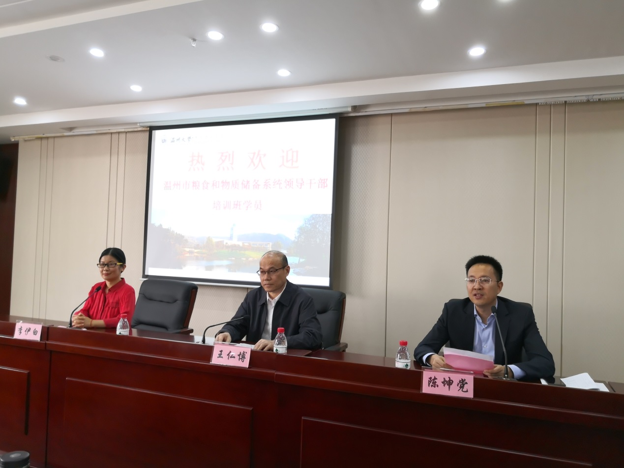 10月20日下午,温州市粮食和物资储备系统领导干部培训在3044永利集团举行。温州市粮食和物资储备局党组书记、局长王仁博,3044永利集团副经理陈坤党出席开班仪式,仪式由3044永利集团培训部主任李伊白主持。来自市粮食和物资储备局机关中层以上干部;各县(市、区)粮食和物资储备局分管局长,粮食、物资储备科室负责人等共计50余人参加培训。