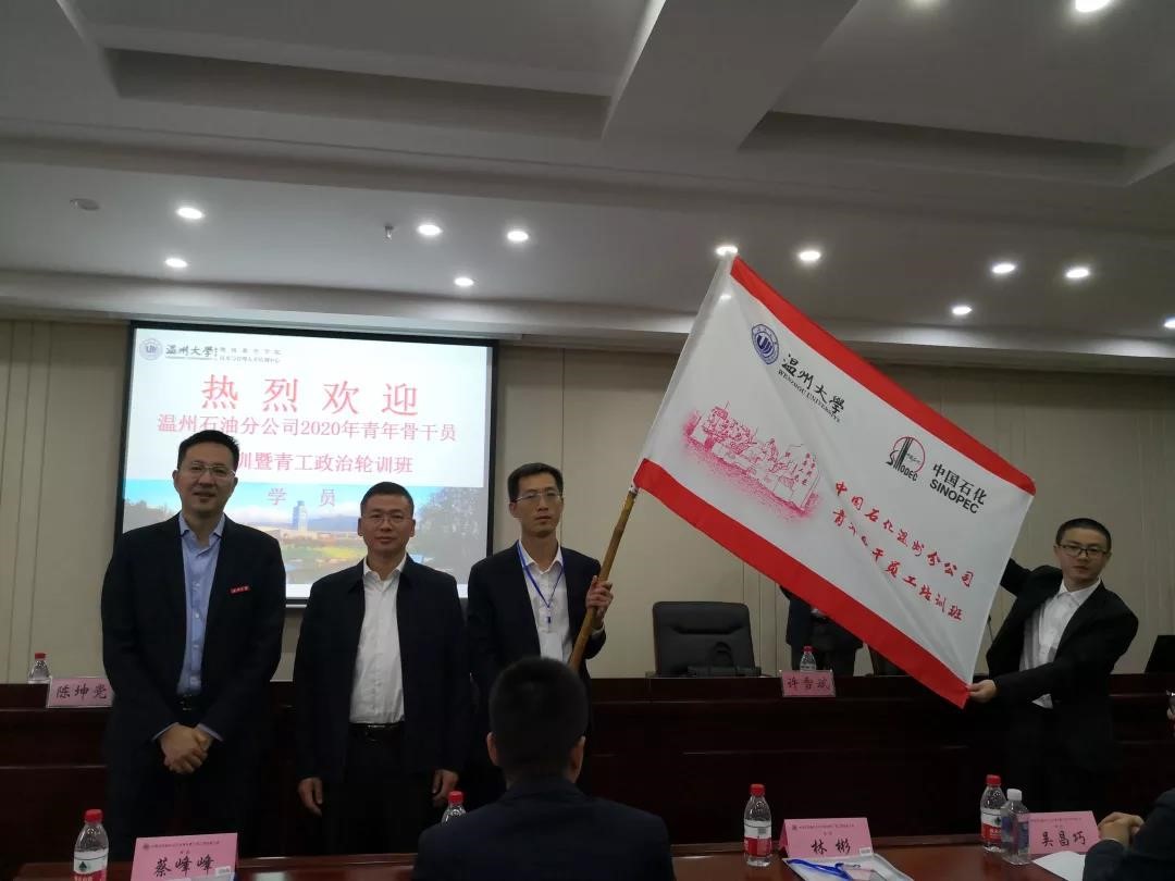 中石化分公司总经理徐冰作《努力当好“温州石油高质量发展”的建设者维护者展示者》的开班动员讲话;3044永利集团副经理陈坤党致欢迎词;学员代表陈凯作表态发言,现场还进行了班旗授旗仪式。