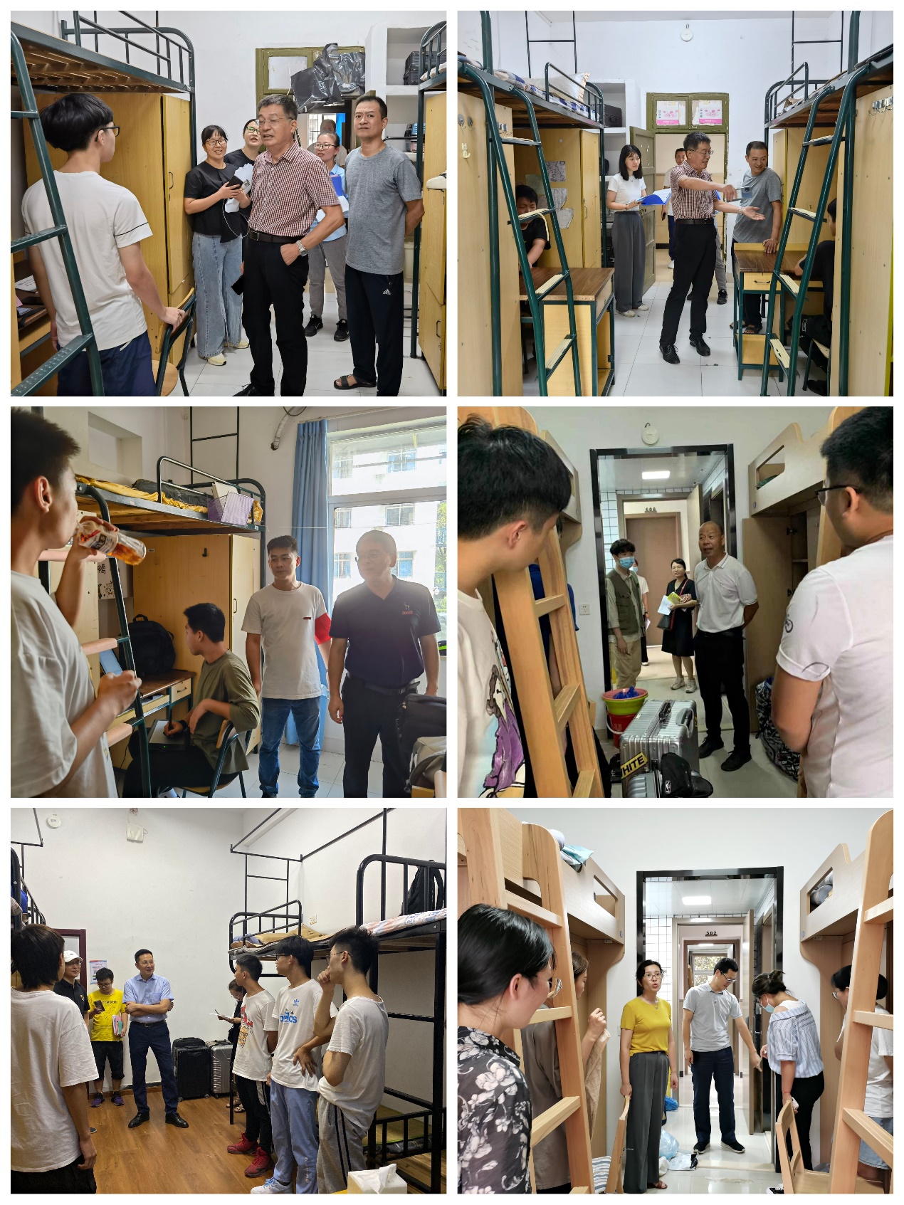 下午,院领导孙广福、杨伟青、张有全、陈坤党、林鹣鹣以及全体辅导员、新生班主任分成五组走访员工寝室,看望新生。