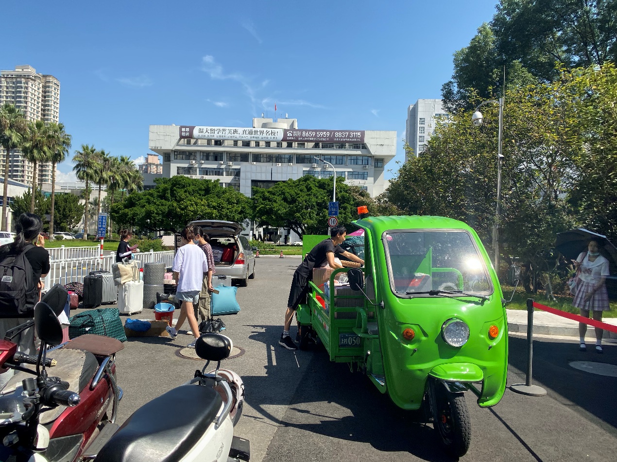 沉甸甸的行李箱装载的是亲人无限的关心与期许。家长在门口看着自己的孩子拿着大包小包的行李,充满着担心与不舍。老师们热情地接过员工手中的行李,并进行测量体温、行李消杀、查验入校材料等一系列流程。进入校园后,员工与家长挥别,正式开启老员工涯。