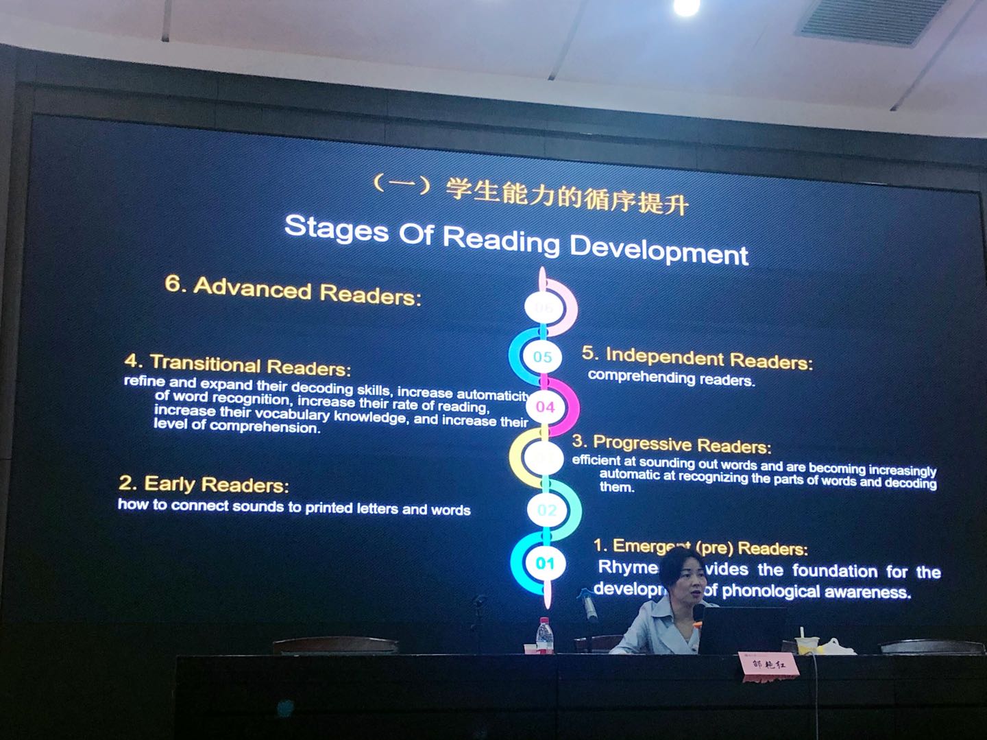 “育人过程是一种学习者内在的文化建构过程,帮助员工在品读故事的过程中,吸收知识,感悟人生,提升为人处事,待人接物的情商。”10月15日,浙江省外国语公司副教授、教育学博士、省师干训中心英语学科培训师邵艳红老师围绕“分级阅读——英语阅读的多元融合与创新”作专题讲座,她从课程改革的理念和风向为起点,详细阐述文化品格和思维品质的提升与优化,分享全国不同地域的实战经验。与此同时,她提出Reading comprehension是一个水到渠成的过程。教师最终的目标是放手,把阅读的舞台交给孩子,让孩子拿到世界上的书都能读出乐趣来。