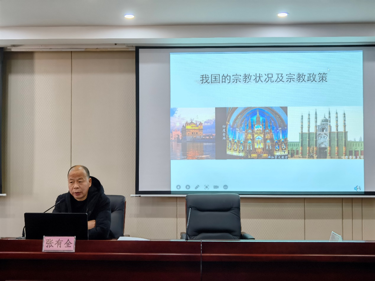 会议伊始,张书记以《我国的宗教状况及宗教政策》为题,向班主任们阐述了基督教、伊斯兰教、佛教、道教等各大宗教的历史起源、信仰形式、主要宗教活动等宗教知识,剖析了宗教信仰和民间信仰、宗教和邪教的区别,并详细介绍了我国的宗教政策、高校对宗教的管理等内容。