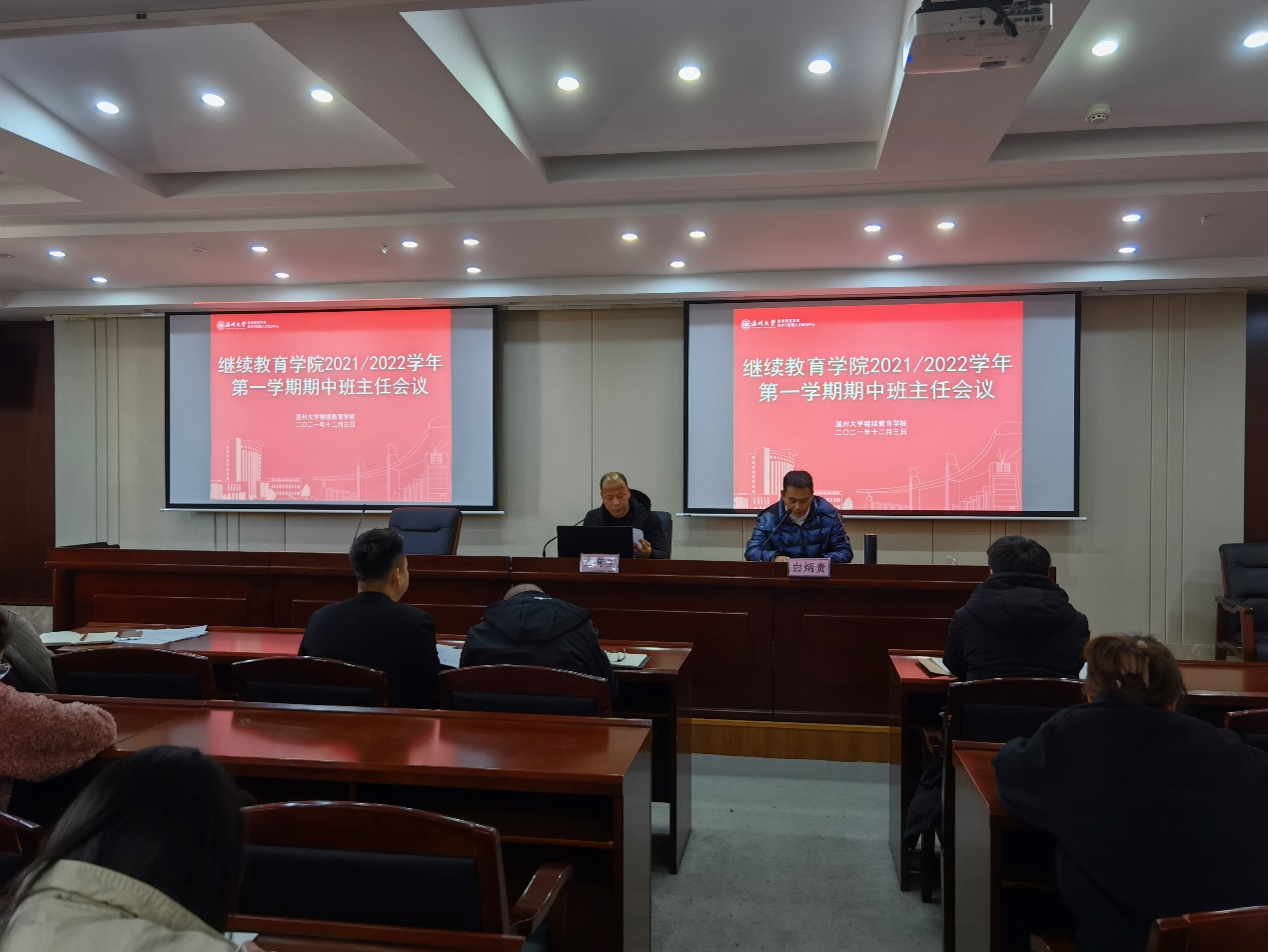2021年12月3日,公司在继教楼1002会议室召开2021/2022学年第一学期期中班主任会议。公司党总支副书记张有全出席会议。