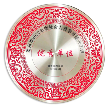 在日前召开的在温高校继续教育联盟高质量发展研讨会上,温州市教育局倪彤副局长授予公司“温州市2022年度社会人员学历提升工作优秀单位”荣誉称号,获此殊荣的高校共有两所。