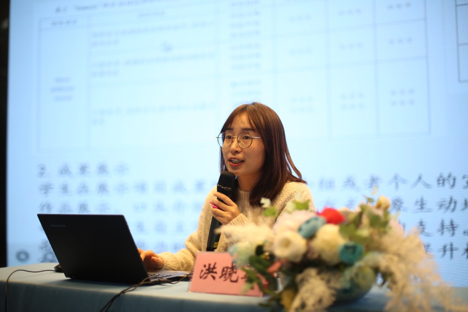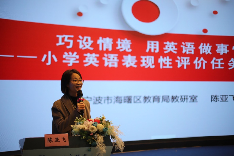 籀园小学的王如杨老师分享了籀园英语阅读评价的实践经验。通过以评促教,以评促学来培养和提高员工的阅读素养。宁波海曙区教研员陈亚飞老师分享了如何通过巧妙创设情境,让员工在英语环境中进行各种活动的实践案例,列举了多种活动评价方式,并提出了“评价主体多元化、评价内容精准化、评价形式多样化”的评价理念。