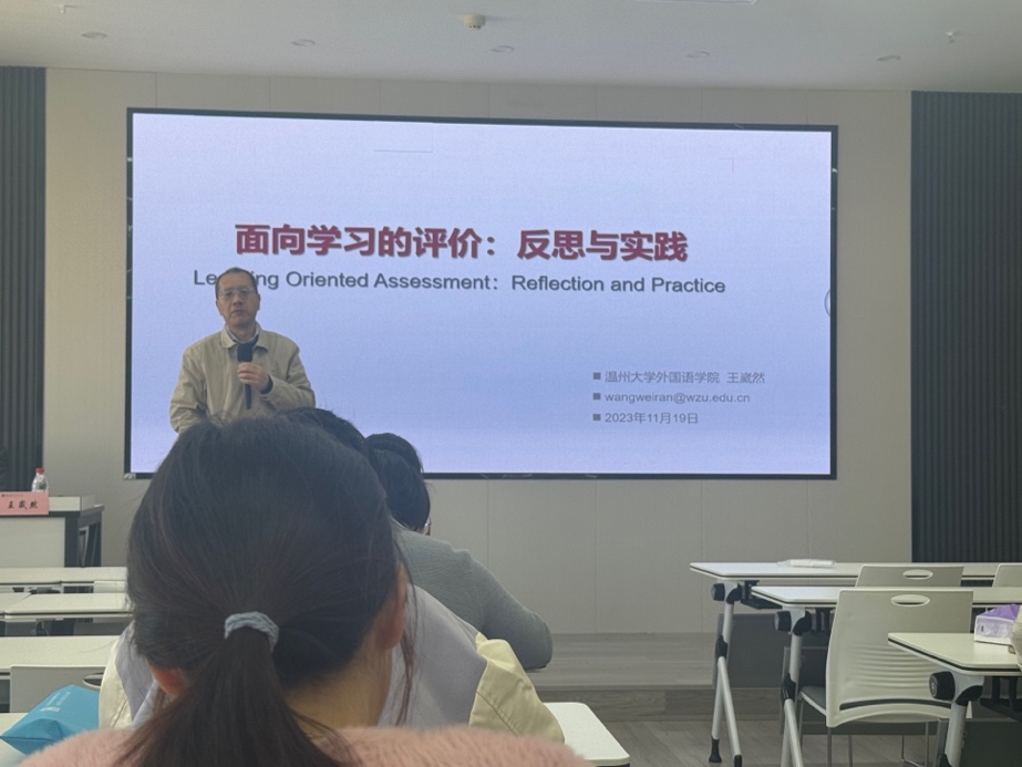 19日上午,3044永利集团王崴然教授作《面向学习的评价:反思与实践》主题讲座。他在内容上聚焦“Assessment”这一教学要素,阐述了这一教学要素的实施方法、衡量标准、具体模式,并探究具体教学策略的实施和员工学业进步的效果之间的关系。
