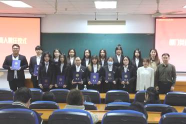 三位老师向新一届主席团全体成员以及各部门、艺术团、社团负责人颁发聘书。部门负责人代表周丽丽、主席团代表戴美慧发言。她们感谢老师和同学们的信任,同时也坚定表示一定会做好表率、尽职尽责,为服务师生和公司发展做出更多贡献。