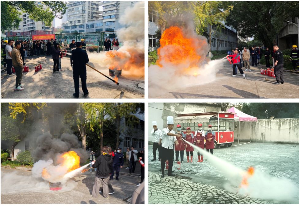 演练第二阶段,由钟良工程师对参与演练的师生员工做灭火实操培训,参与人员一同学习灭火方法、灭火器使用注意事项等相关知识。大家踊跃参与,亲自尝试使用干粉灭火器扑灭燃烧中的火焰。通过演练,师生员工进一步加深了对消防安全的认识,具备了基本的消防安全技能。